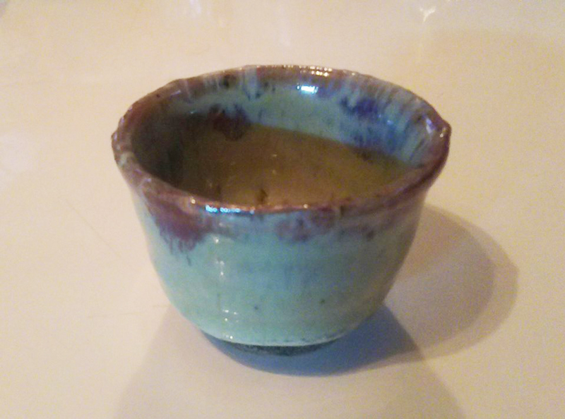 お店の一角に、お猪口がディスプレーされており、焼き物好きの私は、席を立って興味津々に眺めていると「焼き物がお好きなのですか?良かったら一つお好きなものを差し上げますよ?」と店主。「え~!酔いんですか~?」といって私のところに貰われてきたお猪口です。